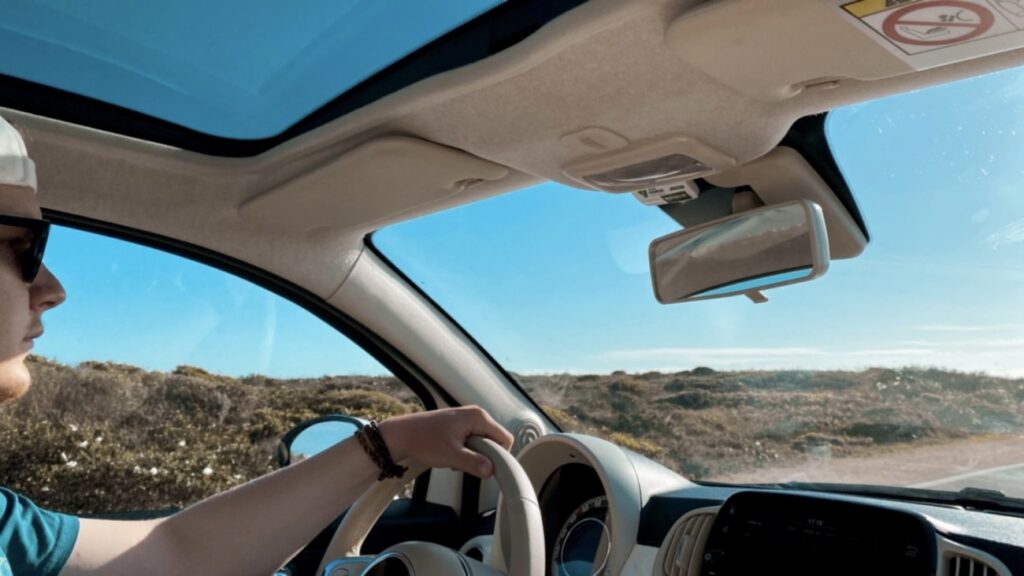 Algarvessa ollessamme halusimme ehdottomasti käydä Sagresissa, joka sijaitsee aivan Euroopan mantereen lounaiskärjessä. Lagosista matkaa tänne on noin 30km, ja päivää varten vuokrasimme Lagosista pienen Fiatin, jolla reissasimme seuraavat pari päivää. Vuokrasimme auton Europcarista, ja olimme täysin tyytyväisiä saamaamme palveluun ja itse autoon. Auton vuokraaminen Portugalissa on suhteellisen helppoa, tosin jotkut yritykset vaativat luottokortin, sekä kaikki yritykset eivät välttämättä vuokraa 18-vuotiaille. Vuokraukseen tuli myös nuoren kuljettajan lisä (23v.). Lagosista Sagresiin ajaminen oli todella helppoa ja maisemat matkan varrella olivat mahtavat. Reissumme ajankohta ei ollut vielä täysin sesonkia, joten autonvuokraushinnat eivät olleet korkeimmillaan.