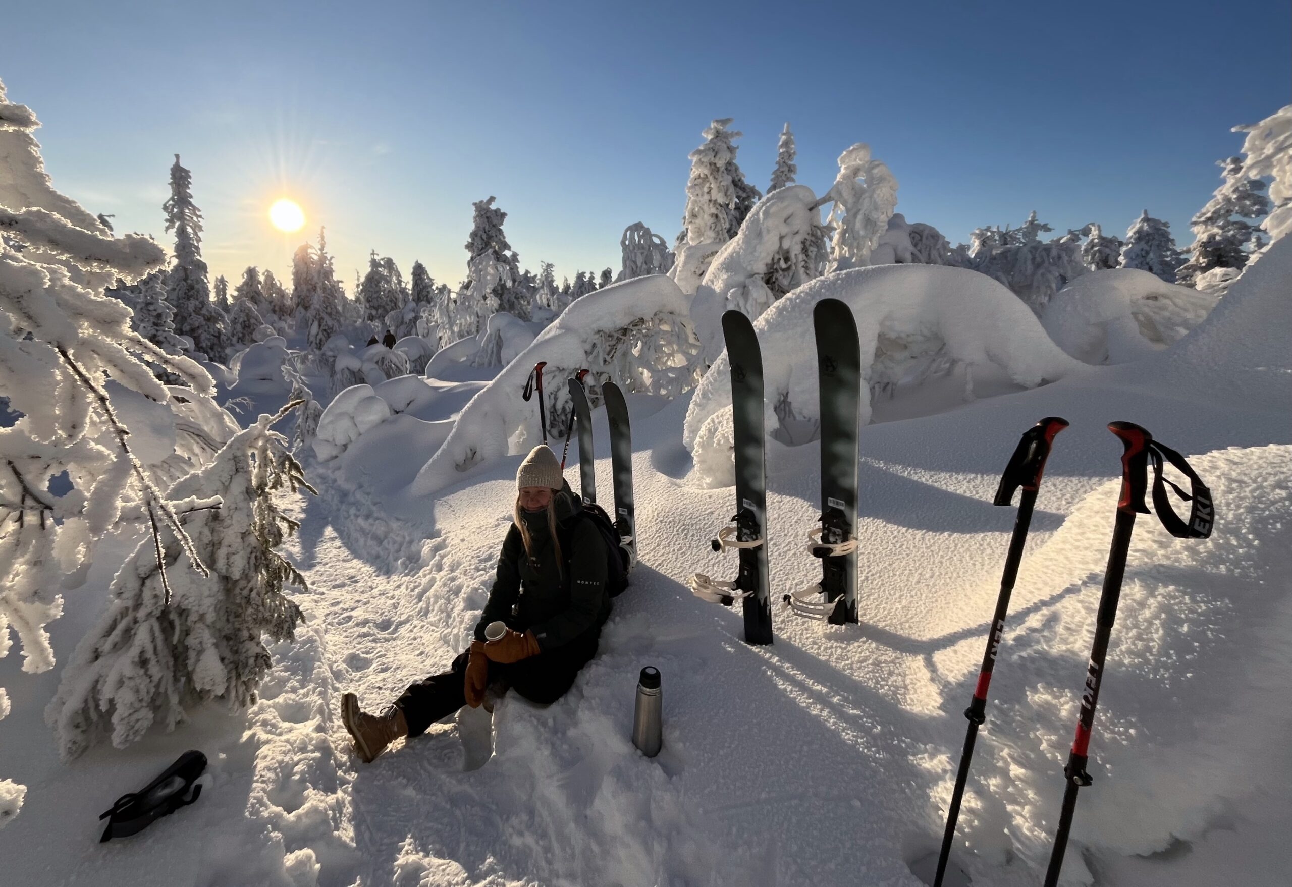 Muutaman pulahduksen ja löylyjen jälkeen oli mukava pukea taas lämmintä päälle illan jälkkärihetkeä varten. Menussa oli vielä letut ja kaakaot tiedossa, mutta pannun unohtuessa kotiin kattilaletut eivät ehkä näyttäneet letuilta mutta maku oli sitäkin parempi.