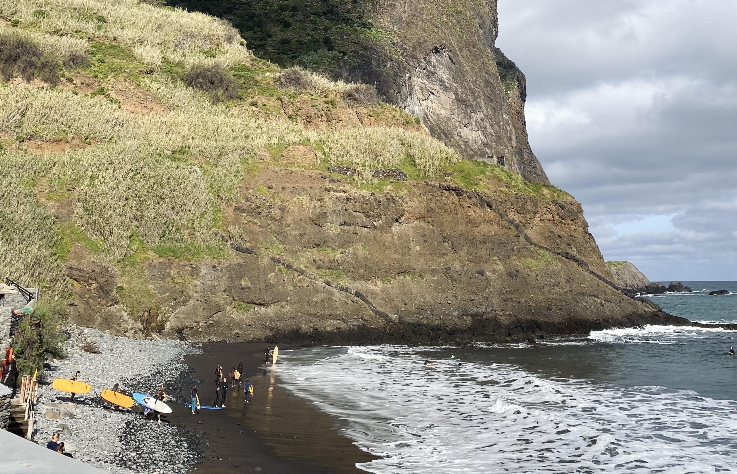 Ensimmäiseksi kohteeksi valikoitui surffiaiheinen miniloma, sillä halusimme jo loman alussa päästä surffaamaan. Valitsimme Madeira Surf Campin, joka sijaitsi aivan Porto da Cruzin kylän keskellä. Machicosta oli matkaa tänne vain noin 10km, jonka kuljimme bussilla. Busseja kulkee jonkin verran Madeiran kylien välillä ja ovat hyvin edullisia.