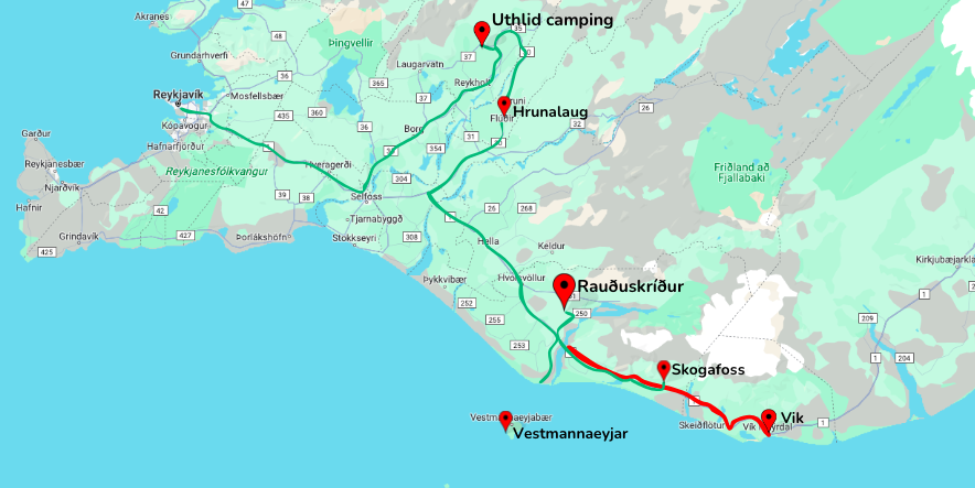 Vuonna 2018 kiersin kolmessa päivässä Hálsanefshellir luolan, Black Sand Beachin, Reynisdrangarin, Dyrhólaey, Skógafossin vesiputouksen, Eyjafjallajökull tulivuoren, Seljalandsfosson, ns. ”Kultaiseen kierroksen ja Þingvellir eli Thingvellirin, Haukadalurin, Gullfossin vesiputouksen, Keriðn ja sitten pyörin Reykjavikissa.